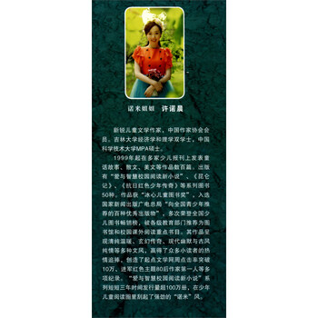新锐儿童文学作家,中国作家协会会员。吉林大学经济学和理学双学士,中国科学技术大学MPA硕士。