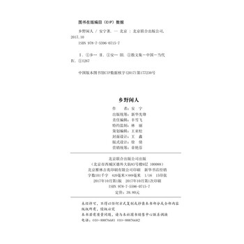 《乡野闲人》为安宁“乡村三部曲”第三部,前两部分别是《我们正在消失的乡村生活》(2016.3,黄山书社)、《遗忘在乡下的植物》(2016.7,北京联合出版公司)书中所选个案,代表了中国大部分乡村的组成,比如村长、小贩、乡村医生、手工艺人、大学生、单身者等等。这些个体人物的悲欢离合,也代表了大多数乡村普通民众的生存状态。尤其在当下城镇化的发展过程中,农民经受的冲击*为强烈,他们的日常生活,人生际遇,也便有了表现的价值。乡土文学需要以有温度和悲悯的笔触,去展示乡村普通民众的人生悲欢与命运起伏。