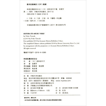 我开始记这本日记的起因,是因为我发觉关于语言我虽然每天都进行着思考,可是一旦想就语言写《和语言漫步的日记》的时候,就什么也写不出来了。“翻译自己作品的问题与可能性”、“在创作活动中掌握外语的好处”、“从外部观察的日语”、“双语和文学”、“语法这种病”等等,我也曾经尝试定下特定的主题,再准备写稿子,可是,确定了主题之后,我就对那主题没兴趣了。这究竟是怎么回事昵?而且,将一个主题再细分为章节后,我开始觉得所有的章节都是无意义的废话。其中的原因之一恐怕是,对我来说,语言这种东西,只有在它和其他主题联系在一起向我的身体倾诉的时才有意义。我虽然喜欢读语言学者写的书,可我自己写不出那样的书来。因此,作为生活在柏林,用日语和德语写小说又经常旅行的人,我决心用日记这种镜子,照照自己头脑中的活动。
