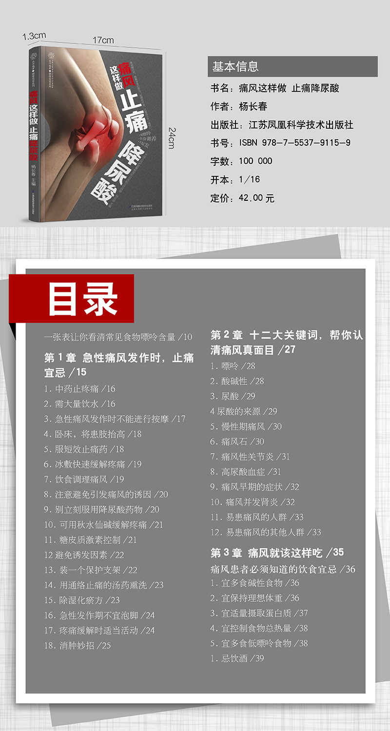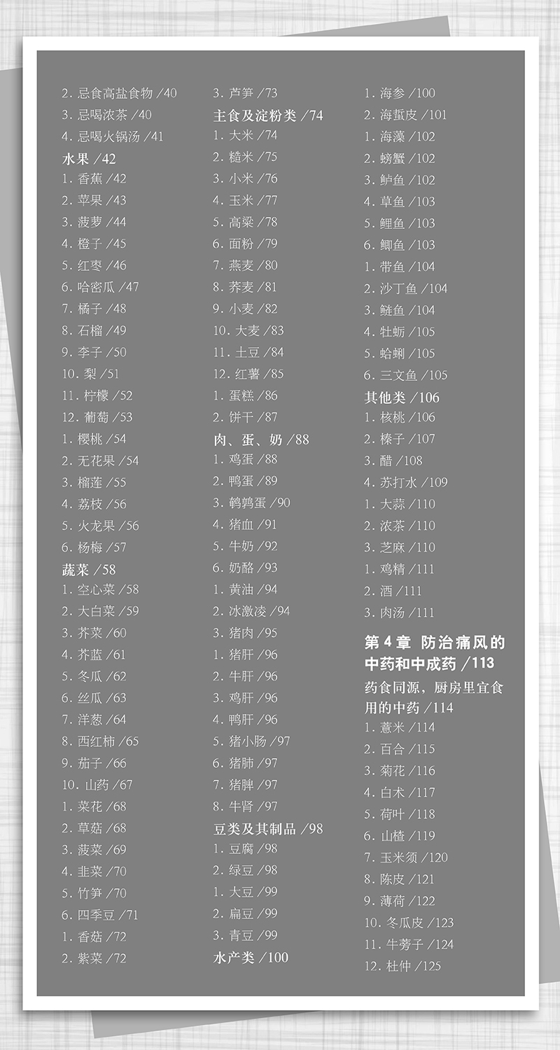 本书教你痛风发作时的止痛妙招,让你在短时间里快速止痛,并按蔬菜、水果、蛋类、肉类、主食、水产分类,分别告诉你哪些食物可以安全食用,哪些应该慎吃和忌吃。本书不仅告诉你怎样规避高嘌呤饮食,还搭配运动、中医保健方法,多管齐下,止痛降尿酸。