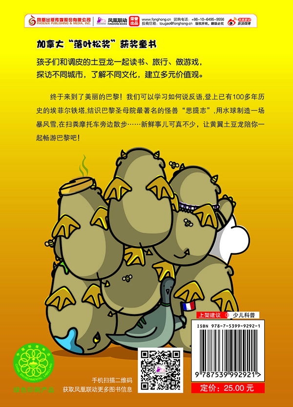 《呆萌土豆龙环球游记3:巴黎》是一本火爆欧美的科普童书。这本写给儿童的城市科普图画书荣获加拿大“落叶松”奖。书中利用漫画、猜谜、小故事、趣味小实验等形式让孩子们领略世界著名城市的历史、文化、地理、语言、美食、建筑、风景等。孩子们和土豆龙一起读书、旅行、做游戏,探访不同城市,了解不同文化,建立多元价值观。本书中,我们即将见到的是七只头上长角、形似土豆、性格迥异的可爱土豆龙,他们生活在世界各地建筑物的屋顶,以绝对另类搞怪又接地气的方式带领孩子们环游世界。