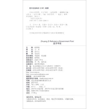 《中国古代贤哲:庄子不仕(中英对照)》的内容涵盖了大家所熟悉的民俗故事、神话故事、节日故事、名胜传说与古代名医、贤哲、智通、帝王、科学家、诗书故事等,共计二十卷,每卷分为若干册。《中国古代贤哲:庄子不仕(中英对照)》为中国古代贤哲(第四册),以精炼的语言和生动的插画呈现了“庄子不仕”的故事。