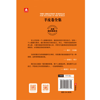 本书是奥格·曼狄诺所辑录的影响世界的15本成功学名著合集,这15本书的作者,都是近200年来欧美各国各个行业中的成功人士,他们根据自己的经历,循循善诱地向世人揭示成功的秘密,以及由之所带来的幸福生活的意义。毫不夸张地说,《羊皮卷全集》是人类历史上伟大的励志书之一。