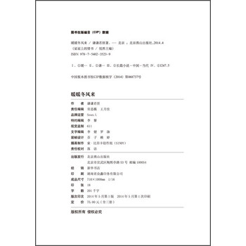 ★《暖暖冬风来》的书名是源自书中女主角季冬暖的名字,暖暖的冬风就是冷面boss霍世江吧?果然是冬风啊,够冷,但深情起来也够暖。这文不错,看着有读顾漫的《杉杉来吃》的感觉,很甜的文,让人憧憬这样的爱情,读者能从中收获到满满的幸福、感动和快乐。果断收藏了。