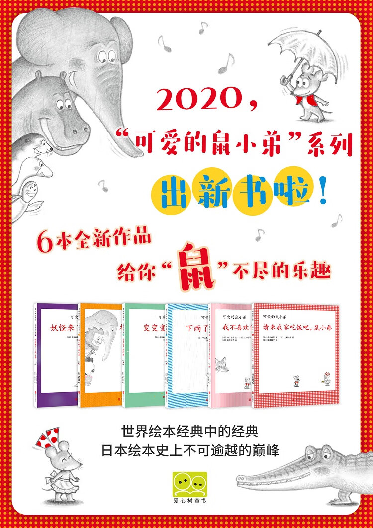 2020年是农历鼠年,也是鼠小弟系列问世45周年,爱心树童书自2004年引进鼠小弟的16个年头。值此契机,爱心树童书推出可爱的鼠小弟新书《我不喜欢你了!鼠小弟》,愿可爱的鼠小弟陪伴小朋友们茁壮成长!
