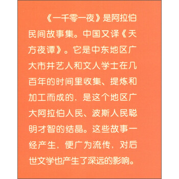 《一千零一夜(注音美绘典藏版)/世界经典童话故事》是阿拉伯民间故事集。中国又译《天方夜谭》。它是中东地区广大市井艺人和文人学士在几百年的时间里收集、提炼和加工而成的,是这个地区广大阿拉伯人民、波斯人民聪明才智的结晶。这些故事一经产生,便广为流传,对后世文学也产生了深远的影响。