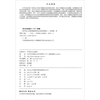 《新型电力系统储能投资运营商业模式》全面分析了新型电力系统中储能电站的投资经济性,探讨了储能技术在电源侧、电网侧和用户侧的应用功能和作用。书中首先介绍了储能技术的主要类型和发展趋势,分析了国内外储能电站的发展现状及相关政策。接着,构建了储能电站设备选址评价模型,包括储能技术发展趋势与成熟度分析、zui优选型模型和zui优选址模型。然后,设计了新型电力系统储能电站投资运营商业模式,并对投资经济性进行了深入分析,包括储能电站LOCE成本测算模型和投资经济性分析模型。最后,提出了储能电站投资综合价值共享机制,包括储能电站投资价值评估体系和综合价值评估模型。书中通过实证分析,为储能电站的健康发展提供了理论支撑和政策建议。