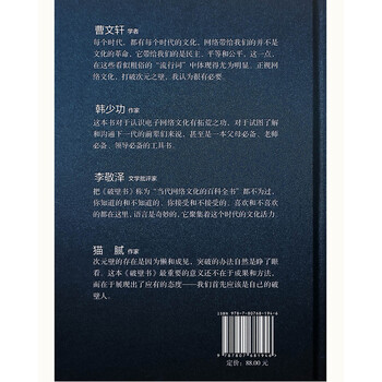 把《破壁书》称为“当代网络文化的百科全书”都不为过,你知道的和不知道的、你接受和不接受的、喜欢和不喜欢的都在这里,语言是奇妙的,它聚集着这个时代的文化活力。