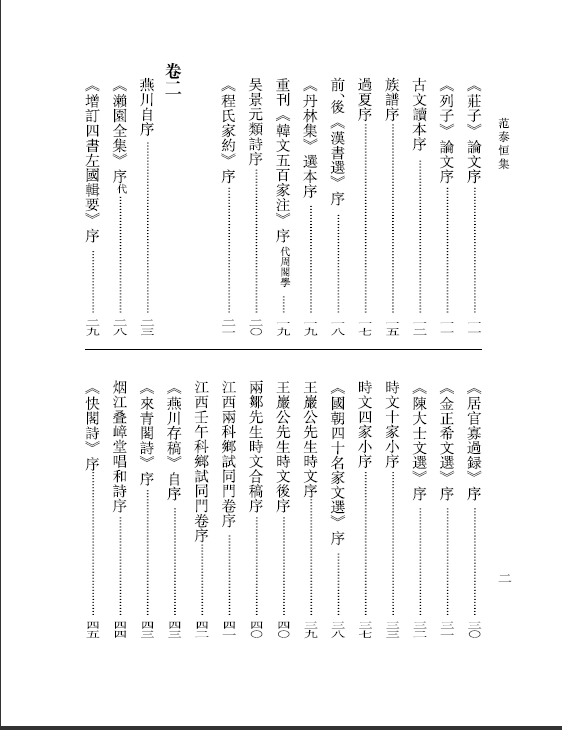 《范泰恒集》以愿起庐重刻本《燕川集》为底本点校。内容以乾隆十年至乾隆二十六年(1761~1762)间事为多,其内容涉及经史之评、诗文之论、历史之究、山川之慨、书画之研、家世之叹等诸多方面,从中不难看出范泰恒之学养、襟怀和性情。贺寿、祭吊等迎来送往之应酬文章,往往能量体裁衣,于规矩中不失自我面目。综而观之,范泰恒文风以气为主,以纵横出入,高下顿跌为用,兴会所至,举笔数百言,一气往复作数十转而锋不顿、神不竭,堪为古文范式。