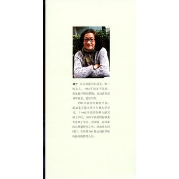 刘丹,刘白羽最小的孩子、唯一的女儿。1953年出生于北京,受家庭环境的熏陶,自幼喜欢读书和音乐,爱好写作。