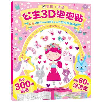 《公主3D泡泡贴》以梦幻的公主为主题,内含2个大型可折叠场景,超过60张3D立体泡泡贴和300张贴纸,小朋友可以发挥想象力自由粘贴、随意涂色,创建属于自己的梦幻国度,实现心中的公主梦想,尽情享受游戏的乐趣。