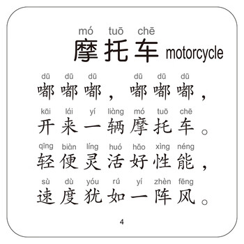 《宝宝撕不烂认知卡·交通工具》正面为高清大图,反面有朗朗上口的儿歌,带拼音和英文名称,便于宝宝学习。