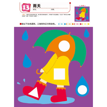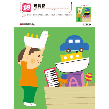 2、所有单页均为涂色,难度逐级递进,由涂单色-涂多色渐渐发展到涂一种不规则区域内的颜色-涂多个不规则区域内的颜色,小朋友只需每天练习两到四页,就能取得明显的进步。