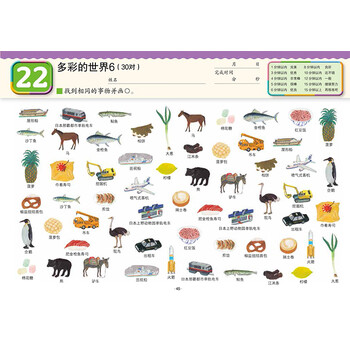 本书没有参考答案,因为本书的首要目的是让孩子体验找相同的乐趣。如果孩子遇到困难,允许他们多花时间慢慢找,不要太在意时间记录。如果孩子无法完成练习,家长可以提供适当的帮助。