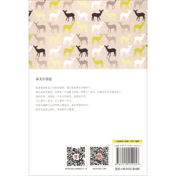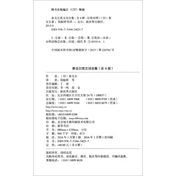 《泰戈尔英文诗全集(中英双语读本 套装1-4册)》共4册,包含了泰戈尔一生英文诗的全部作品,包括《飞鸟集》《采果集》《吉檀迦利》《园丁集》《流萤集》《爱者之贻》《新月集》《游思集》《渡口集》《诗选》。这些诗句意味隽永,将抒情和哲思完美结合;让大家欣赏佳译、陶冶情操的同时,提高自身的英语水平。