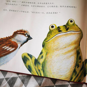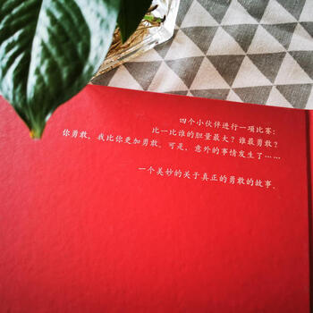 这是一本鼓励孩子思考的图画书。老鼠、蜗牛、青蛙和麻雀坐在池塘边。他们要比试一下谁比较勇敢。老鼠、蜗牛、青蛙每个人都想出了一个对自己来说很难完成的任务:老鼠潜水游到了湖的对岸,青蛙吃下了一朵荷花,蜗牛离开了它的蜗牛壳,而小麻雀也做了一件意想不到的事情。