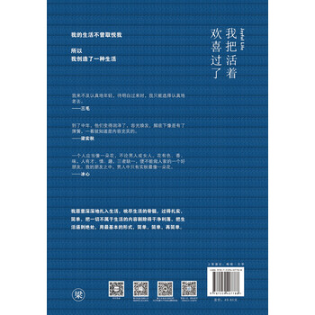 本书聚集了梁实秋此生作为一名中国文学泰斗的全部生活智慧,精心辑录44篇散文,从喝茶散步,到读书写字,有时天时地理,有时世俗人情,没有生之无聊死之激烈的大悲大喜,而是在简洁的文字中透露出活着的欢喜和平实,以及一种温暖的情味。