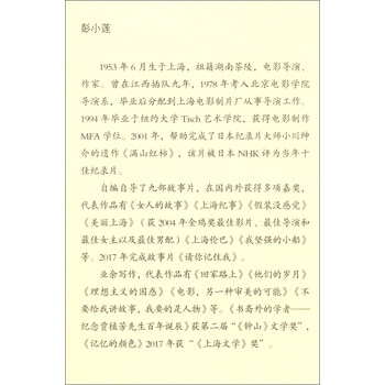 彭小莲,1953年6月生于上海,祖籍湖南茶陵,电影导演、作家。曾在江西插队九年,1978年考入北京电影学院导演系,毕业后分配到上海电影制片厂从事导演工作。1994年毕业于纽约大学Tisch艺术学院,获得电影制作MFA学位。2001年,帮助完成了日本纪录片大师小川绅介的遗作《满山红柿》,该片被日本NHK(评为当年十佳纪录片。