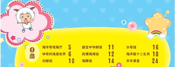 慢羊羊村长今天带羊羊们参观海洋馆啦!那里生活着许多可爱、神秘的海洋生物:有寿命最长的海龟、有长得像马儿一样的海马、有尾巴含有剧毒的鳐鱼、有号称“海中狼”的鲨鱼、还有国宝中华鲟、十大水母之最……羊羊们一边观赏一边学习鱼儿的各类知识,他们观看海豚的精彩表演,还学会了海洋版十二生肖,最后羊羊们还和海洋生物实现了亲密接触,哈哈,真是好玩又有意义的一天!小朋友们,快和羊羊们一起随着鱼儿游进海洋馆,游进神奇的海底世界吧!