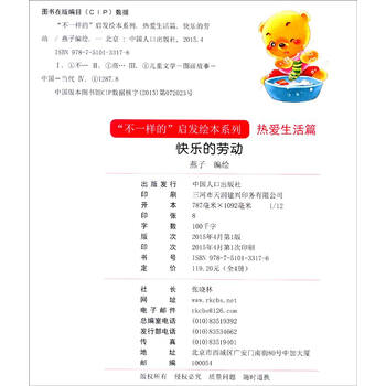 《“不一样的”启发绘本系列 热爱生活篇:快乐的劳动》是一本有助于孩子感恩生活的情感绘本,绘本的主人公小熊快乐地生活、旅行、劳动,心中满怀热情。每个场景、每个画面都流露出小熊对于生活的热爱、对生活美好的向往,以及父母对小熊深深的爱,处处充满了浓浓的爱意。