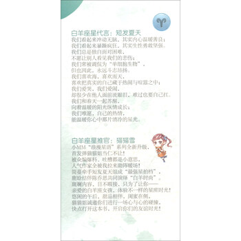 ★当简蔓提出要写一个白羊座和死对头处女座之间发生的故事时,我的心里闪过一丝不祥的预感:处女座已经被“黑”出天际了,这次不会被设定成反派角色吧?没想到,完稿出来却让人啼笑皆非,这哪里是死对头之间的“战斗故事”?分明是一对好朋友的诞生史!谁说简蔓是只会写催泪故事的“虐心天后”?这个故事让我从头笑到尾是怎么回事?