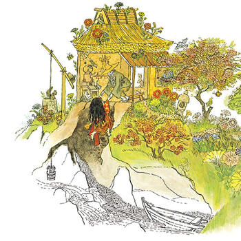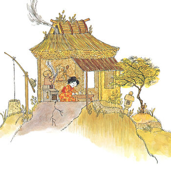 改编自小泉八云整理的日本民间故事,图画带有浓郁的日本民间文化色彩,对地洞世界里的菩萨和恶鬼的描绘都非常传神。图画运用双线并行的叙事手法来讲故事,通过色彩与构图的变化推动故事情节,最后双线合并为一个圆满的结局,构思巧妙,非常耐读。
