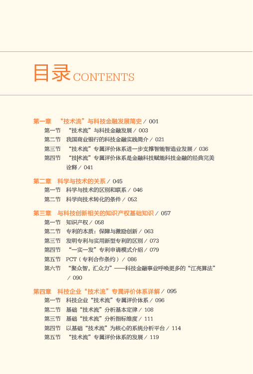《科技金融与“技术流”评价体系》一书由中国建设银行科技金融创新中心编著,系统介绍了其以大量科技金融实践产生的经验和“大数据”为依托,在全国首创推出的科创企业“技术流”专属评价体系,从体系内容、评核标准、关键应用等多方面论述了该体系的科学性和创新性,为科技金融的持续、科学发展奠定了坚实的基础。透过对“技术流”评价体系的深入阐释,呈现新时代科技金融领域的创新成果,为读者全面解读“技术流”评价体系,为金融系统寻找发展新路径提供可借鉴的范本,符合创新驱动发展的发展战略要求。