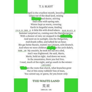 《荒原》是艾略特诗歌精选集。其中收录了艾略特最广为人知的作品,包括《J.阿尔弗雷德•普鲁弗洛克的情歌》《荒原》《四首四重奏》等。