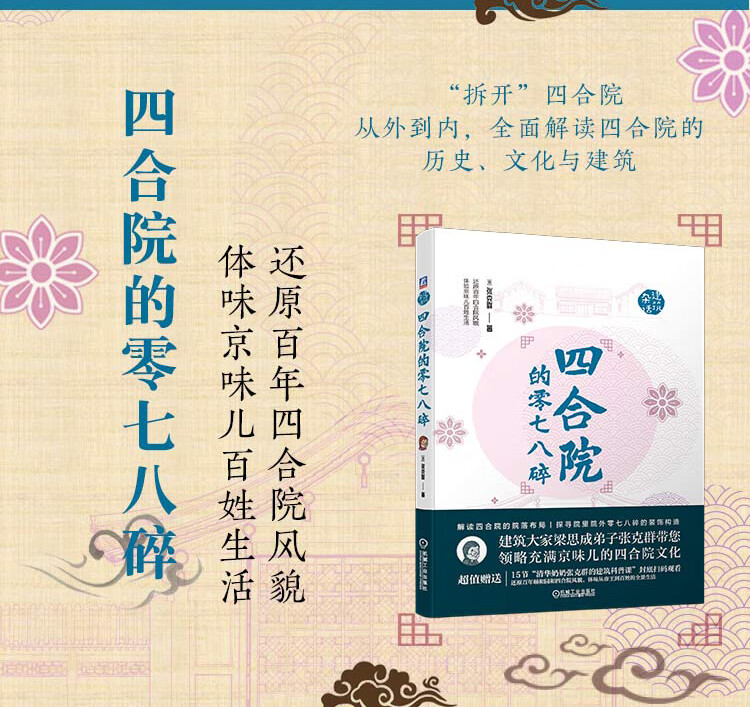 本书通过清晰明了的讲解、生动诙谐的语言,解读四合院的院落布局与院里院外零七八碎的装饰构造,带您领略充满京味儿的四合院文化。本书包括概说院子、大门外头、大门主体、四合院落和房屋内外五部分内容,从整体设计到细部装饰,全面解读四合院的历史、文化与建筑,使读者从中领略四合院的独特魅力和丰厚的历史文化内涵。