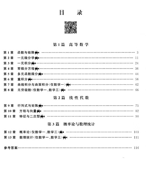 本书适合作为考研数学一、数学二或数学三的教材,同时可供需要学习高等数学、线性代数、概率论与数理统计的大学一年级、二年级本科生及参加大学生数学竞赛(非数学类)的学生使用。