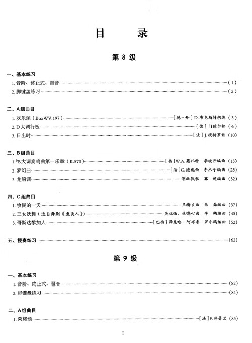 为了更好地普及、提高双排键电子琴的教学和演奏,使其在社会音乐教育和专业音乐教育中发挥更大的作用,编委会组织专家、学者在中央音乐学院考级委员会的指导下精心编纂了《中央音乐学院校外音乐水平考级曲目-双排键电子琴·电子管风琴(第8-10级)》。