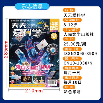 《天天爱科学(8~12岁版)》是一本专为8~12岁少年儿童精心打造的科普杂志,旨在通过生动有趣的内容,激发孩子们对科学世界的好奇心与探索欲,引领他们走进科学领域的奇妙世界,栏目形式丰富多样,让在孩子在阅读中不知不觉学习课本知识,拓宽课外视野,培养科学思维和实践能力。