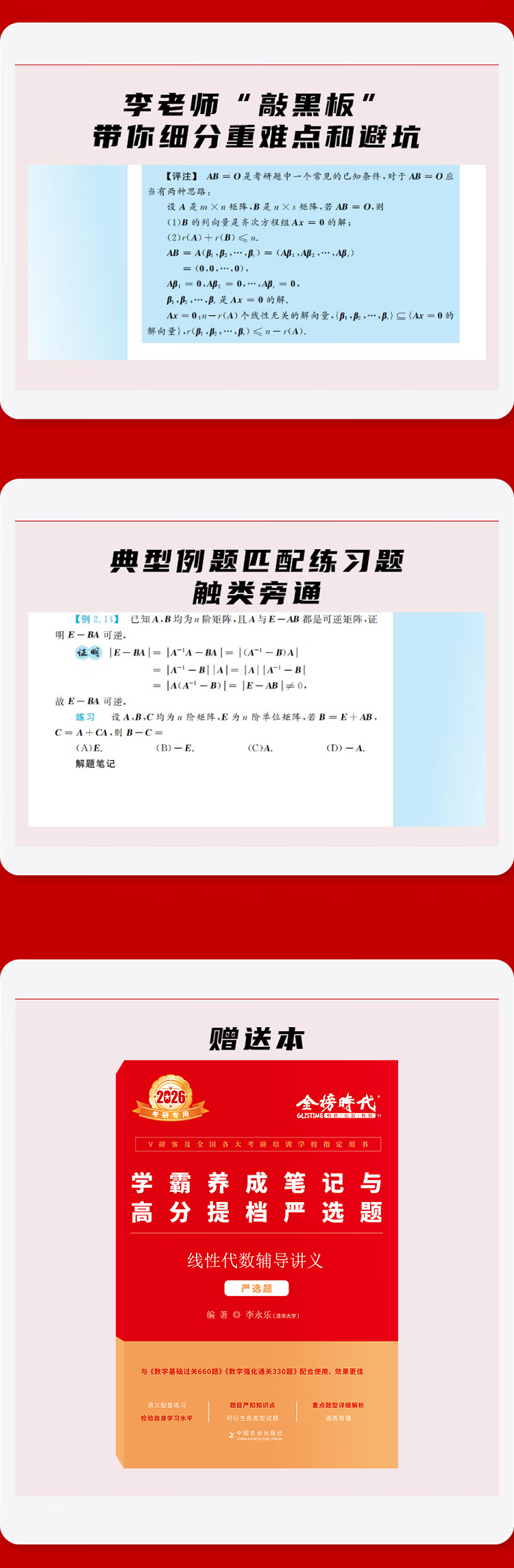 2026【上岸学习包】李永乐线性代数辅导讲义 赠送严选题(可搭张宇肖秀荣1000题徐涛核心考案汤家凤)