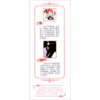 陈柳环,中国少年儿童新闻出版总社签约作家,2009年出版处女作《萝铃的魔力》后赢得超高人气。狮子座,居住在神秘海岛,喜欢阅读、旅行,热衷于塔罗牌、星座和太空研究。