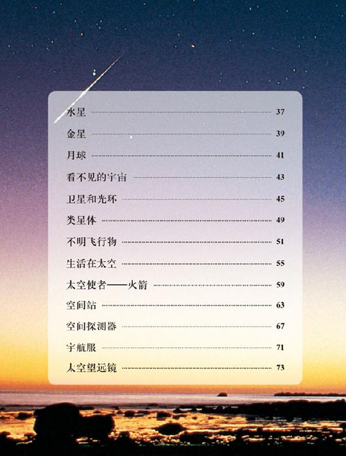 该书主要科学性地向大家介绍了宇宙空间的天体、宇宙的结构和发展。让大家了解到天文学是一门古老的科学,自有人类文明史以来,天文学就有重要的地位。天文学与其他自然科学不同之处在于“观测”。通过观测来研究天体的构造、性质和运行规律。本书运用大量精美照片和手绘插图配以详细的文字介绍,将神秘而迷人的宇宙展现在你面前。