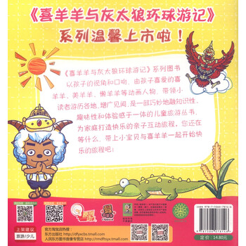眼界有多宽,心就有多大。带孩子去旅行,大概是最好的亲子教育。天然景观,大自然本身的产物,感受自然赋予的美,会让孩子珍爱自然、保护自然;人文景观,是人类社会、历史、艺术的产物,蕴含着人类无限的创造力和超凡的智慧,感受人文之美,会让孩子热爱文化、传承文化。这就是旅行带给孩子的宽阔的眼界,人文的情怀,丰富的内心。《喜羊羊与灰太狼环球游记》系列亚洲站共6册,已经上市的有《喜羊羊与灰太狼环球游记之中国香港》《喜羊羊与灰太狼环球游记之中国台湾》,《喜羊羊与灰太狼环球游记之日本》,《喜羊羊与灰太狼环球游记之新加坡》,即将上市的有《喜羊羊与灰太狼环球游记之泰国》《喜羊羊与灰太狼环球游记之马来西亚》,赶快带上小宝贝与喜羊羊一起开始快乐的旅程吧!