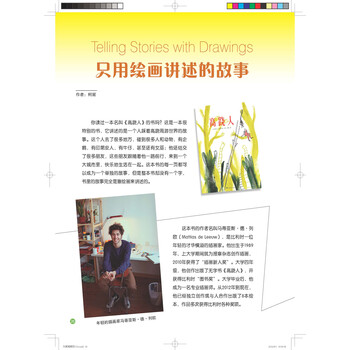 这本书的作者名叫马蒂亚斯?德?列欧(MattiasdeLeeuw),是比利时一位年轻的才华横溢的插画家。他出生于1989年,上大学期间就为报章杂志创作插画,2010年获得了“插画新人奖”。大学四年级,他创作出版了无字书《高跷人》,并获得比利时“图书奖”。大学毕业后,他成为一名专业插画师。从2012年到现在,他已经独立创作或与人合作出版了8本绘本,作品多次获得比利时各种奖项。