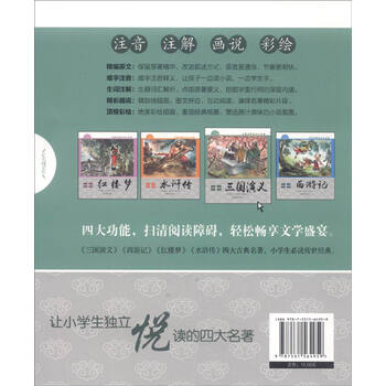 《彩图注释版四大名著 三国演义(小学生版)》共一百二十回,描写了魏、蜀、吴三国的兴亡史。故事起自汉末黄巾起义,止于西晋统一,前后跨越近百年的时间。小说开篇写汉末昏君无道,民不聊生,导致了黄巾起义的爆发。全书以此为开端,继续深入描写了在镇压农民起义的过程中,各方势力拥兵自立,互相混战:先是十七路诸侯联合讨伐董卓,董卓被杀;然后,曹操"挟天子以令诸侯",大败袁绍,北征乌桓,平定了北方,既而进兵江南;之后,孙权、刘备联合抗曹,在赤壁击败曹操,为三国鼎立奠定了基础。此后,三国之间战争不断,各有胜负,最后都归于西晋。作者以统揽全局的眼界,将近百年间错综复杂的人物和事件组织在一起,结构清晰、逻辑严谨,为读者展现了一个时代的历史巨变。