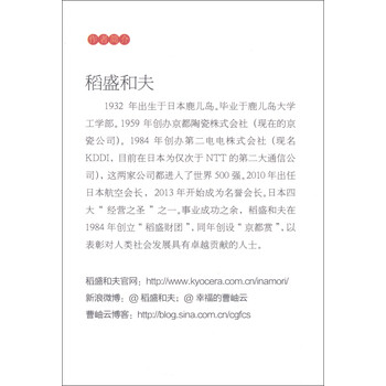 做企业的目的是什么?赢利!做企业人的目标是什么?帮企业赢利!然而,为什么在财务报表形势喜人、经营业绩节节攀升的同时,我们还会听到公司员工对老板的私下抱怨,看到高层们面对发展的十字路口无法舒展的愁眉,甚至此时正目睹着各界舆论对业界翘楚、时代精英们毫不留情、铺天盖地的指责与奚落?诚然,所有企业及企业人都恪守着赢利——这一亘古不变的原则在时代的浪潮中奋勇前进,但是又有多少人真正参透了利益背后的玄机?中国并不需要“道义放两边、利字摆中间”的商业大鳄,更不会提供给缺乏德行、忽视修为的企业人广阔发展的康庄大道;如果想在白热化的竞争中一枝独秀,就必须要剖开经济的表象,探求企业的本质,找到得以在如今的世道中生存下去的活法。这本《活法(珍藏版)》的作者稻盛和夫是日本战后经济的传奇,他不用优美的文字取胜,也不用高深的说教让人五体投地,而是将其多年心得以质朴的文字向我们娓娓道来。企业人会从中领会真正的企业发展之路,而普通人亦将感受到最高境界的“为人之道”。
