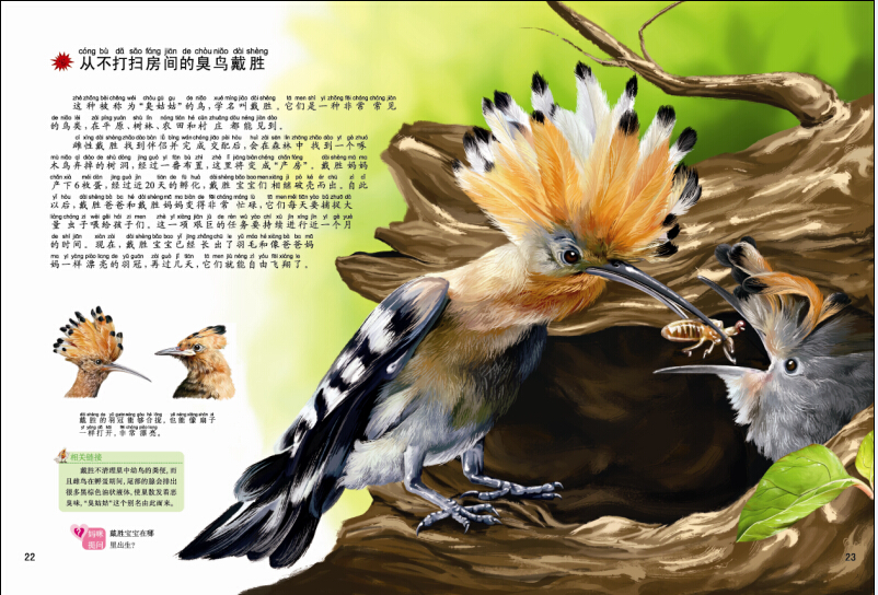 本书为小读者讲述了近30种主要和常见的鸟类。通过动物生长的过程展现出动物宝宝和动物爸爸妈妈之间爱的情感,并传递了成长过程的艰辛,让小读者感受到大自然神奇的力量。书中文字加注了拼音,有利于孩子阅读,超大手绘插图更加增添了图书的艺术感,让读者感受到自然的魅力。