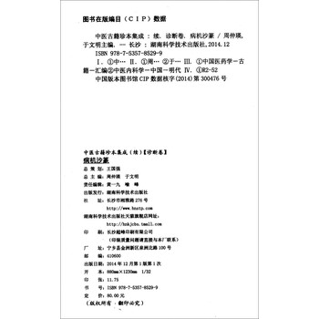 《中医古籍珍本集成(续 诊断卷) 病机沙篆》后经清代医家尤乘增补,并与《本草通玄》、《诊家正眼》合刊为《士材11.书》。尤氏评述三书云:明乎虚实、强弱、标本、先后,以施治疗之方,则沙篆备矣;将欲按脉'察色、审声、望气,以知病之所由生,则正眼详矣;将欲辨气、别味,随温凉寒热以攻疾去邪,则通玄要矣。