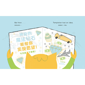 《许愿要小心》由迪士尼出品,配套资源包括英语音频扫读及宣传动画短片。绘本以”家和家人“为主题,告诉孩子家需要耐心和包容。故事幽默搞笑,图画风格生动简洁,采用4种专色印刷和绢印艺术,别具一格。小猫邓普顿不喜欢每天被爸爸妈妈催着去洗澡和收拾东西, 更不喜欢自己心爱的玩具被三个弟弟随意地拿去玩,于是他对着一个有魔力的钻石许了一个愿望——让他的家人们都消失!然后邓普顿的愿望实现了,整个屋子里就只剩下他一个人。一开始,他很享受这种自由自在的感觉,但……这个故事不仅教会孩子懂得珍惜家人,懂得更加谨慎地表达。这个格言常常用于警告别人,许愿的时候可能会忽略这个愿望会带来的坏处,而这个坏处可能远比想摆脱的现状更加可怕。就像书中的主人公邓普顿,他希望他的家人都消失,这样就再也没人来打扰他了,更不用分享自己的玩具了,但他忽略了这个愿望同时意味着家里再也没有人会陪他一起玩耍了,一个人在家的日子并不那么好过,孤独的滋味是他所希望的那种自由的代价。