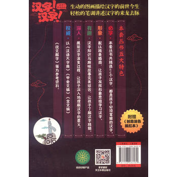 《汉字汉字汉字原来如此》丛书共5册,《汉字!汉字!汉字原来如此:有表情的字》为其中一册。本套丛书以发扬汉字文化、提高少儿读者的文化素养为宗旨而策划编绘,旨在让少儿读者更深入地理解汉字,体味汉字,学习汉字。《汉字!汉字!汉字原来如此:有表情的字》选取了75个形声字和会意字,比如笨、慈、亲、恶、忠、善、羡等等,分别选取其甲骨文、金文、小篆和楷书字形,揭示汉字的诞生、演化过程;同时选取经典的汉字故事,包含历史故事、神话传说、文化习俗,后是汉字密码。书中的每一个汉字都是一幅美丽的画,都有一个动人的故事。