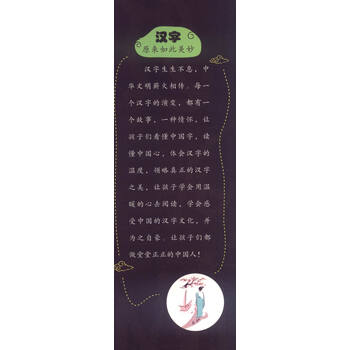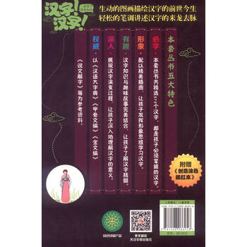 《汉字汉字汉字原来如此》丛书共5册,《汉字!汉字!汉字原来如此:有故事的字》为其中一册。本套丛书以发扬汉字文化、提高少儿读者的文化素养为宗旨而策划编绘,旨在让少儿读者深入地理解汉字,体味汉字,学习汉字。《汉字!汉字!汉字原来如此:有故事的字》选取了75个会意字,比如半、分、共、占、比、先等等,分别选取其甲骨文、金文、小篆和楷书字形,揭示汉字的诞生、演化过程;同时选取经典的汉字故事,包含历史故事、神话传说、文化习俗,后是汉字密码。书中的每一个汉字都是一幅美丽的画,都有一个动人的故事。