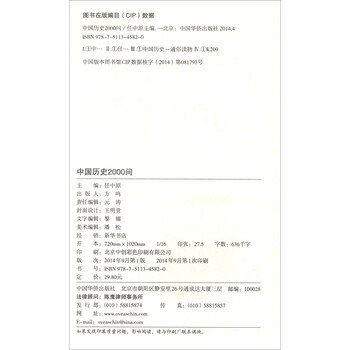 为了帮助读者更方便、更轻松、更快捷地了解和掌握必要的中国历史知识,《中国历史2000问》对历史资料进行了适当的取舍,选取了最具代表性、最实用、读者最感兴趣的内容,采用一问一答的方式,将浩如烟海的历史知识浓缩到近两千个问答中。《中国历史2000问》分为八篇,以历史时间为顺序,讲解了民俗传统、历史传承、历史之最、科技发明、文化奇葩、传统艺术、天文历法等方面的知识。一个个妙趣横生的历史故事,描绘出一幅幅波澜壮阔的历史画卷,勾勒出一个个栩栩如生的历史人物,带你进入引人人胜的中国历史长河,真切感受五千年历史的文明脉动以及中华民族创造的无数辉煌与成就。