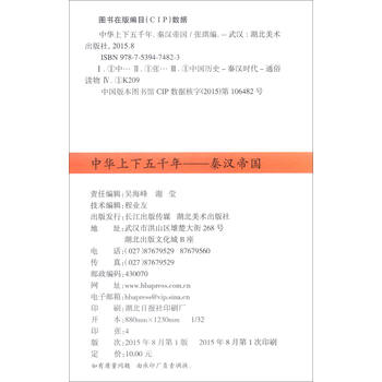 《中华上下五千年:秦汉帝国(彩图版)》是《中华上下五千年(彩图版)》的秦汉帝国卷,由张琪编。内含焚书坑儒、昭君出塞、赤壁之战等历史故事。每个故事均设有精彩导读、阅读点拨、阅读思考三个栏目。每个故事的文字上面都注有汉语拼音。