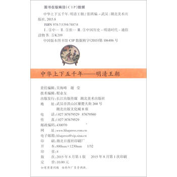 《中华上下五千年:明清王朝(彩图版)》内含郑和七下西洋、戚继光驱逐倭寇、郑成功收复台湾等历史故事。每个故事均设有精彩导读、阅读点拨、阅读思考三个栏目。每个故事的文字上面都注有汉语拼音。