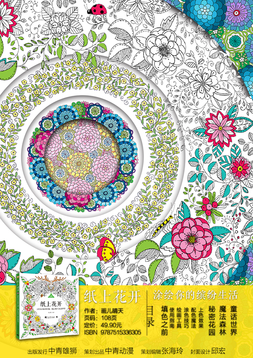 希望您能在繁忙的工作和学习中,抛开一切的压力和困扰,尽情地投入到涂绘的神秘世界里。专心上色的时刻一定是宁静、安逸和放松的,当我们给心情涂上彩虹的颜色,相信生活就会变得五彩斑斓!