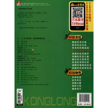 恐龙也是会群居的,它们会一起捕捉猎物,一起分享猎物,这样的恐龙包括腔骨龙、美颌龙等,这样的生活方式是和它们的体型息息相关的,为了适应生存环境,为了围猎比它们高大出很多倍的恐龙,它们必须采取围猎的方式,以获得自己所需要的食物。看,这种庞然大物也是具有聪明智慧的。让孩子切身感受那个与众不同的世界的魅力。《3D恐龙馆 团结的群居恐龙》采用大图少字的形式,内文中都是跨页图,而且带有3D立体效果,只要孩子戴上眼镜,就会发现书中的恐龙赫然活跃在纸上,真是无比神奇的一本恐龙书。
