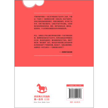 ※经过全面修订和补充,为广大父母提供新鲜的医学和医疗指导,内容涵盖重要医学课题,如疫苗接种时间表、婴儿猝死综合症(SIDS)、食物过敏、新生儿检查、儿童肥胖等;除了婴儿护理的基本信息外,本书还提供全方位的育儿指导:如何挑选日托机构、如何选择婴儿安全用品(包括汽车座椅和婴儿床)等内容。